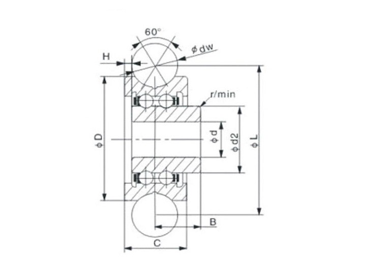 | Bearing No. | dw | d | D | C | B | L | d2 | H | Cw(KN) | Cow (KN) |